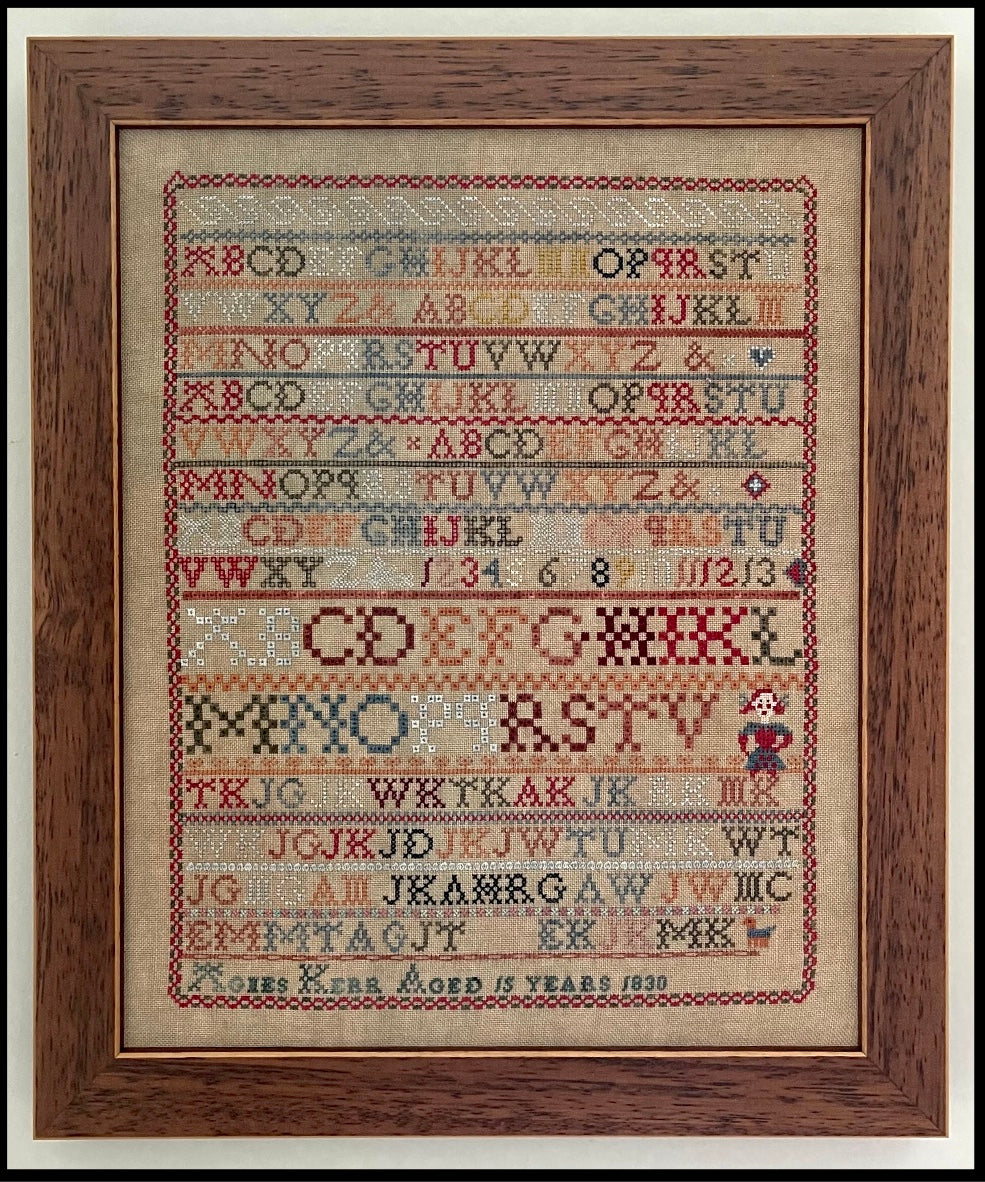 Due to thread loss and fading this chart could not be an exact reproduction, but every effort was made to create as close a match as possible to Agnes' original.