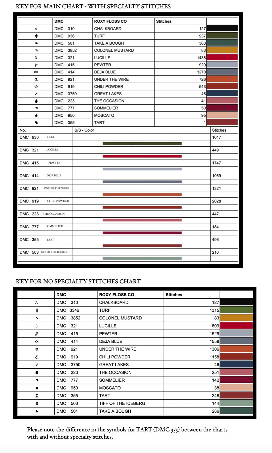 DMC Conversion provided but due to the overdyed nature of the Roxy Flosses an exact match isn't possible.