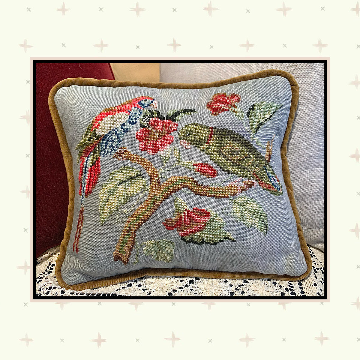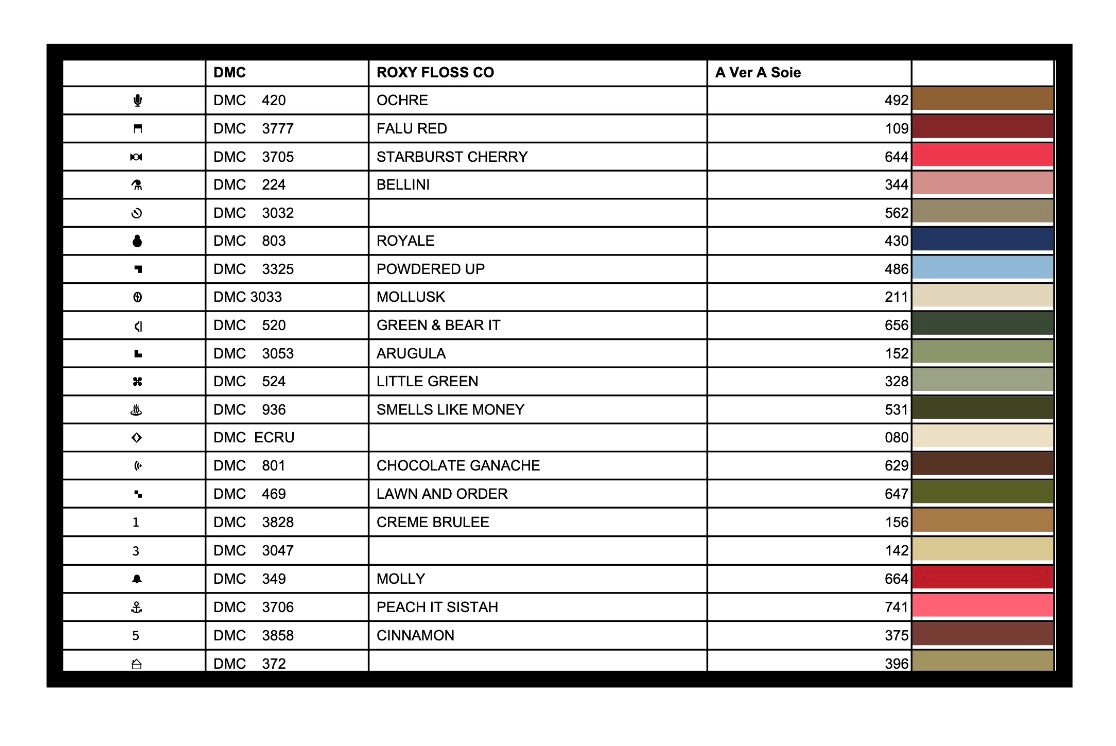 Model Stitched on 32 count Roxy Floss linen in the colourway Cat Nap using two strands of Roxy Floss Co threads over tho linen threads. DMC and Au Ver a Soie conversions provided, but due to the overdyed nature of the Roxy Floss Co threads, an exact match is not possible. Suitable for linen and aida stitchers.