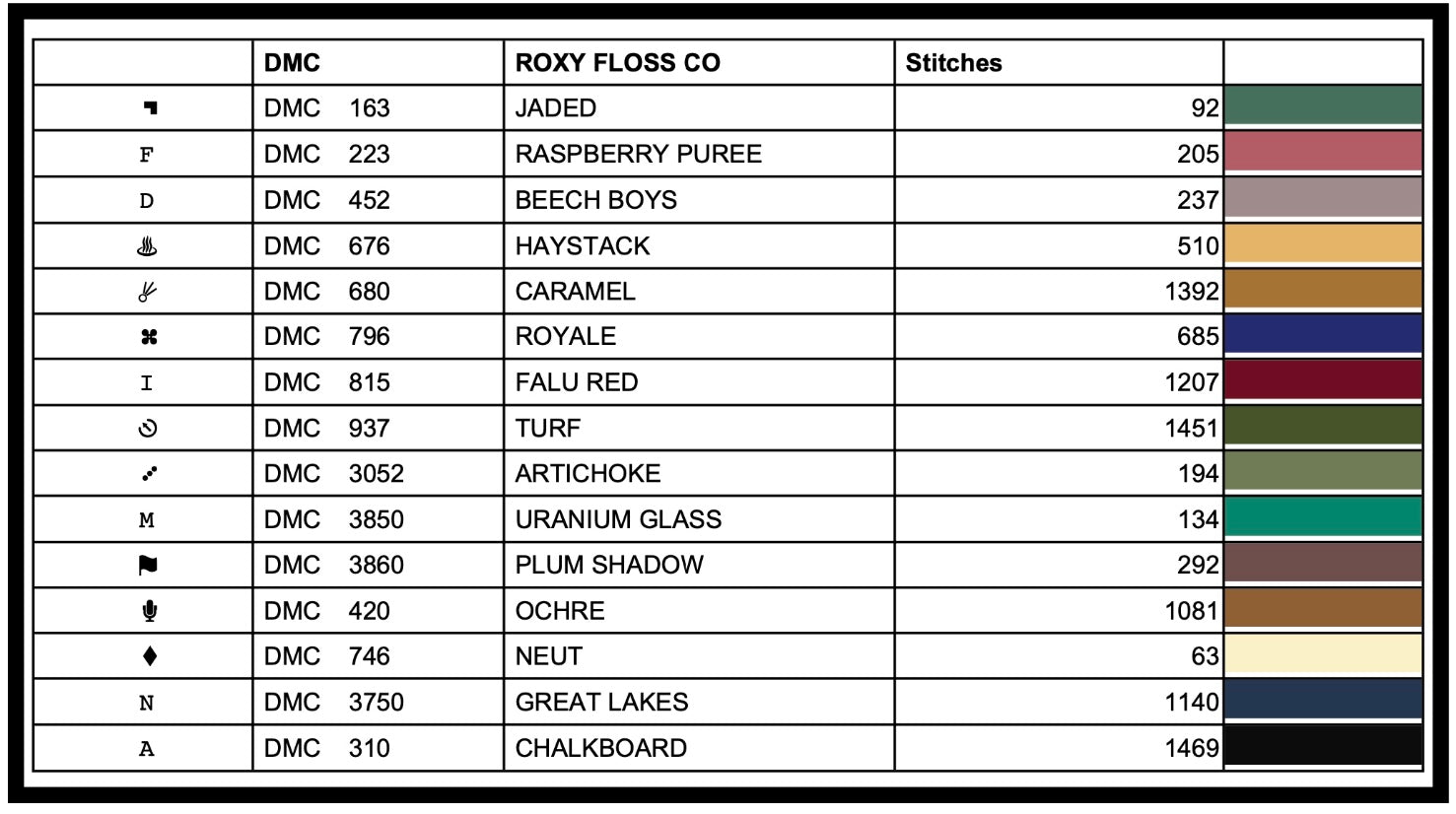 Model stitched on 40 count linen in "Spindrift" from Cedar River Linen and Design (https://www.cedarriverlinen.com) using Roxy Floss Co flosses. Porcelain linen from Evertote (https://www.evertote.ca) is another good alternative linen).